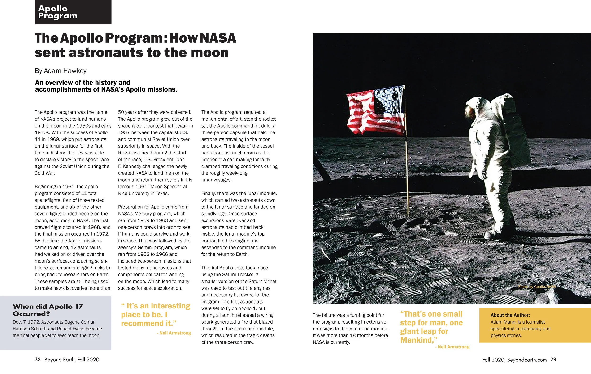 Created in 2019, Beyond Earth is a scientific exploration magazine that provides readers with different editions every month. The Astronaut Edition magazine is a limited edition that focuses on the science and stories of being an astronaut. The magazine carefully pieced together high-quality information. Each section contains its simplicity, making this magazine suitable for people of all ages.